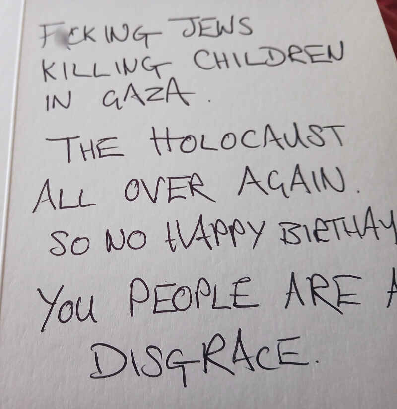 CST recorded four incidents that involved Grievous Bodily Harm or threat to life in 2025 (including the fatal attack at Heaton Park Synagogue), meaning that they were severe enough to be categorised as Extreme Violence, double the number recorded in 2024 and more than the total for the previous three years combined. There were an additional 170 cases of antisemitic Assault. Taken together with the four reports of Extreme Violence, physical attacks accounted for 5% of all incidents, compared to 6% in 2024. Incidents of Damage & Desecration of Jewish property rose sharply by 38% to a record 217 cases, including attacks on homes, vehicles, synagogues, schools, Jewish businesses and hostage memorials. CST recorded 196 direct antisemitic Threats, 27 cases of mass-produced antisemitic Literature, and 3,086 instances of Abusive Behaviour. The latter is the widest and most frequently logged category of anti-Jewish hate, accounting for 83% of all antisemitic incidents in 2025.