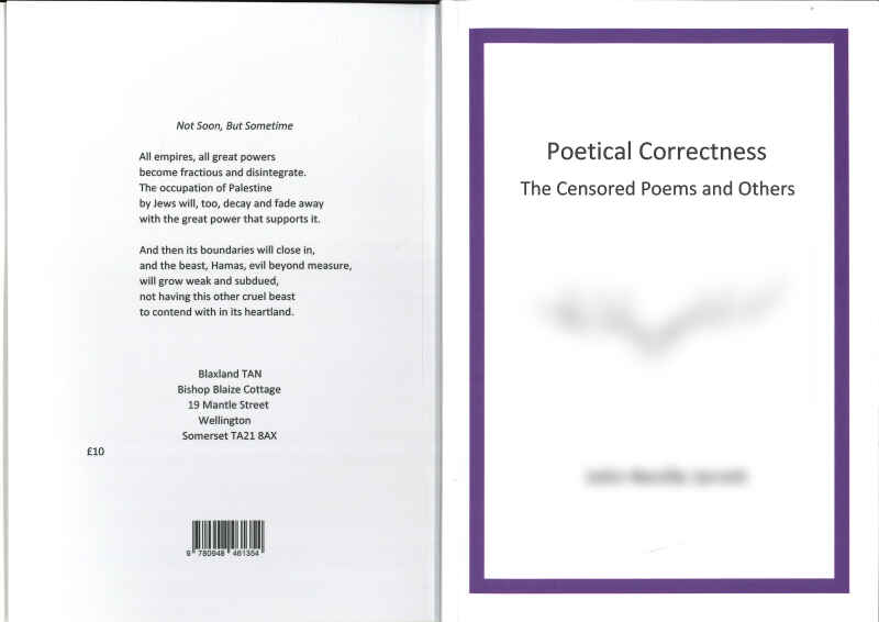 In October, attendees on a walking tour in Somerset were handed a poetry book. Within it, there were poems titled ‘Troublesome Jews’, ‘The Second Holocaust’ and ‘The Terrorists We Rewarded’, pictured below.
